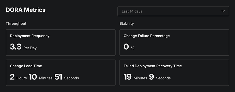 After appropriate configuration, you can track all four DORA metrics automatically: